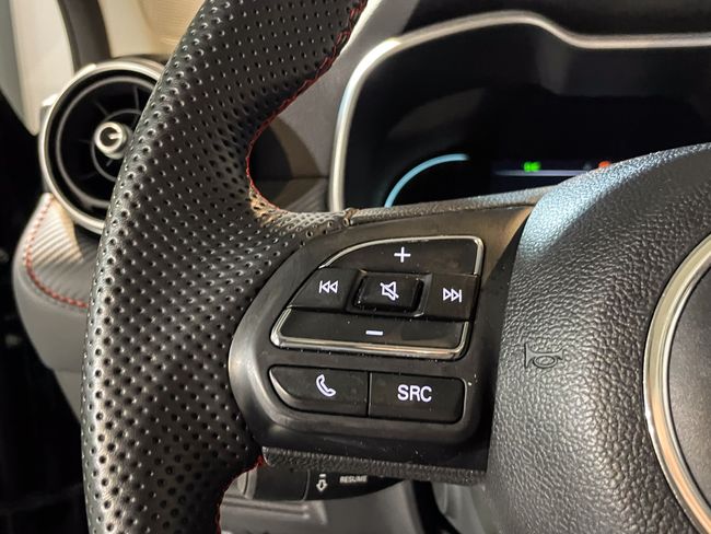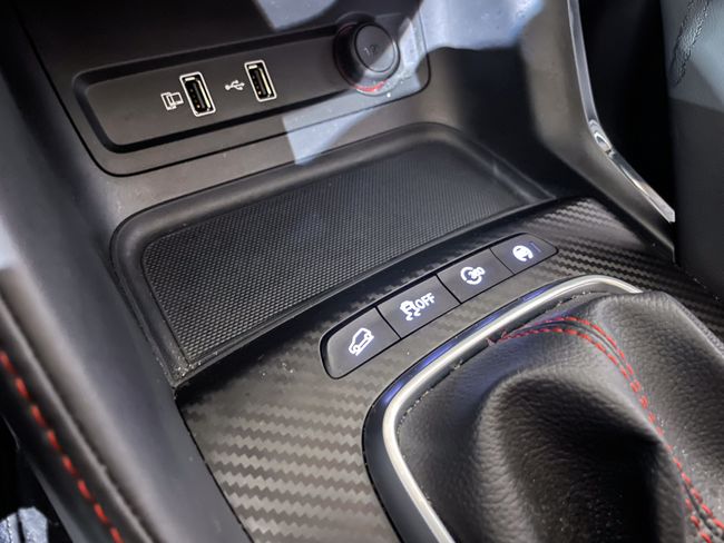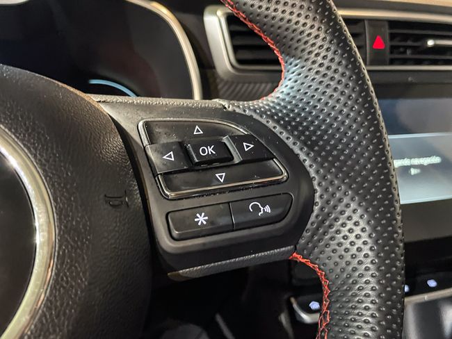 Interior: Tapicería de símil cuero con costuras rojas (en ocasiones con logotipos bordados), asientos delanteros calefactables (y ajustables eléctricamente en la versión automática), volante multifunción achatado y climatizador automático con purificador de aire.