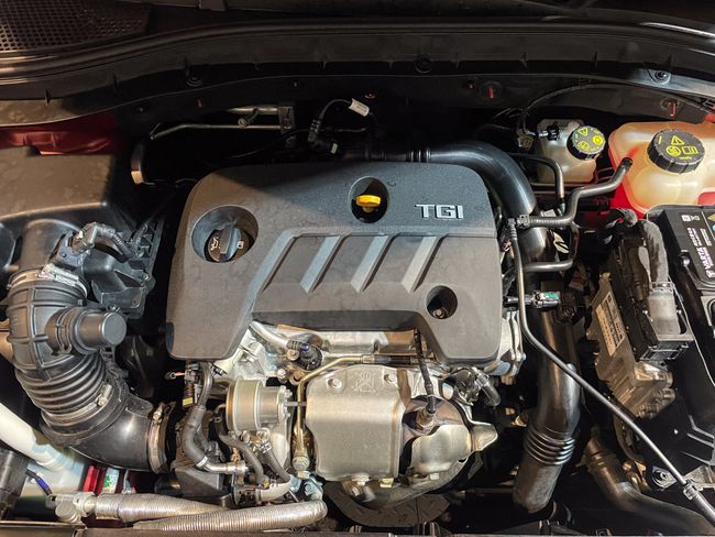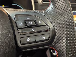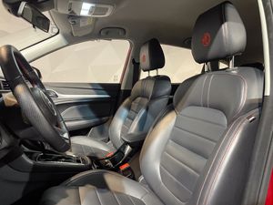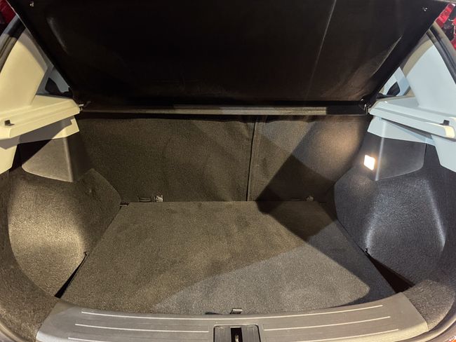 Tapicería de polipiel: Asientos revestidos en material de efecto cuero con pespuntes rojos, lo que le da un aspecto más deportivo y premium.